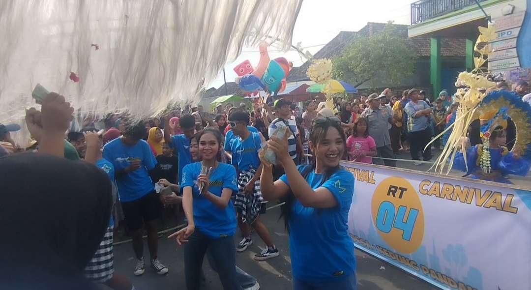 Beberapa perempuan menari disco tak bisa menyembunyikan rasa senangya mendapat banyak saweran, ia mengaku senang bisa ikut dalam pawai budaya yang sangat berkesan..”Singkatnya.