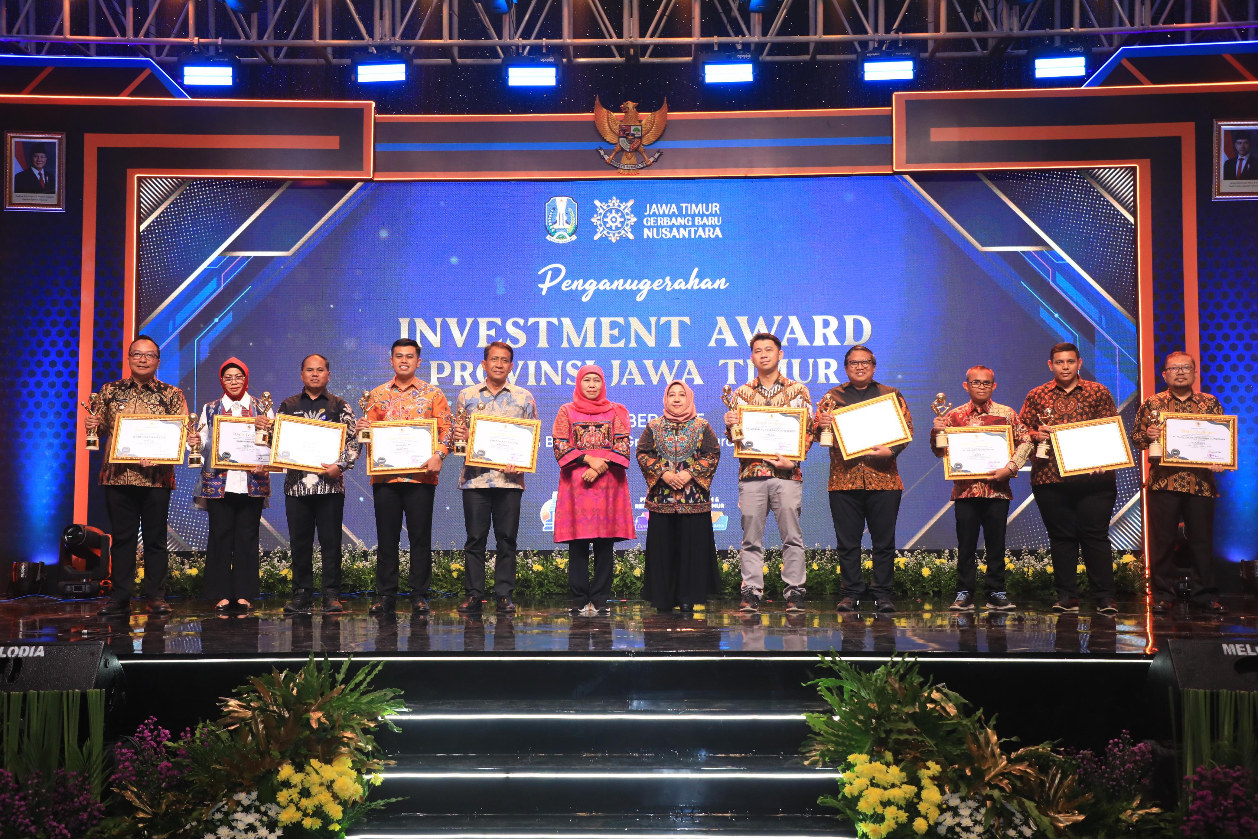 Investment Award merupakan bentuk apresiasi Pemprov Jatim kepada daerah, instansi, dan pelaku usaha yang dinilai berhasil meningkatkan investasi, memperbaiki layanan perizinan, serta menciptakan iklim usaha kondusif.