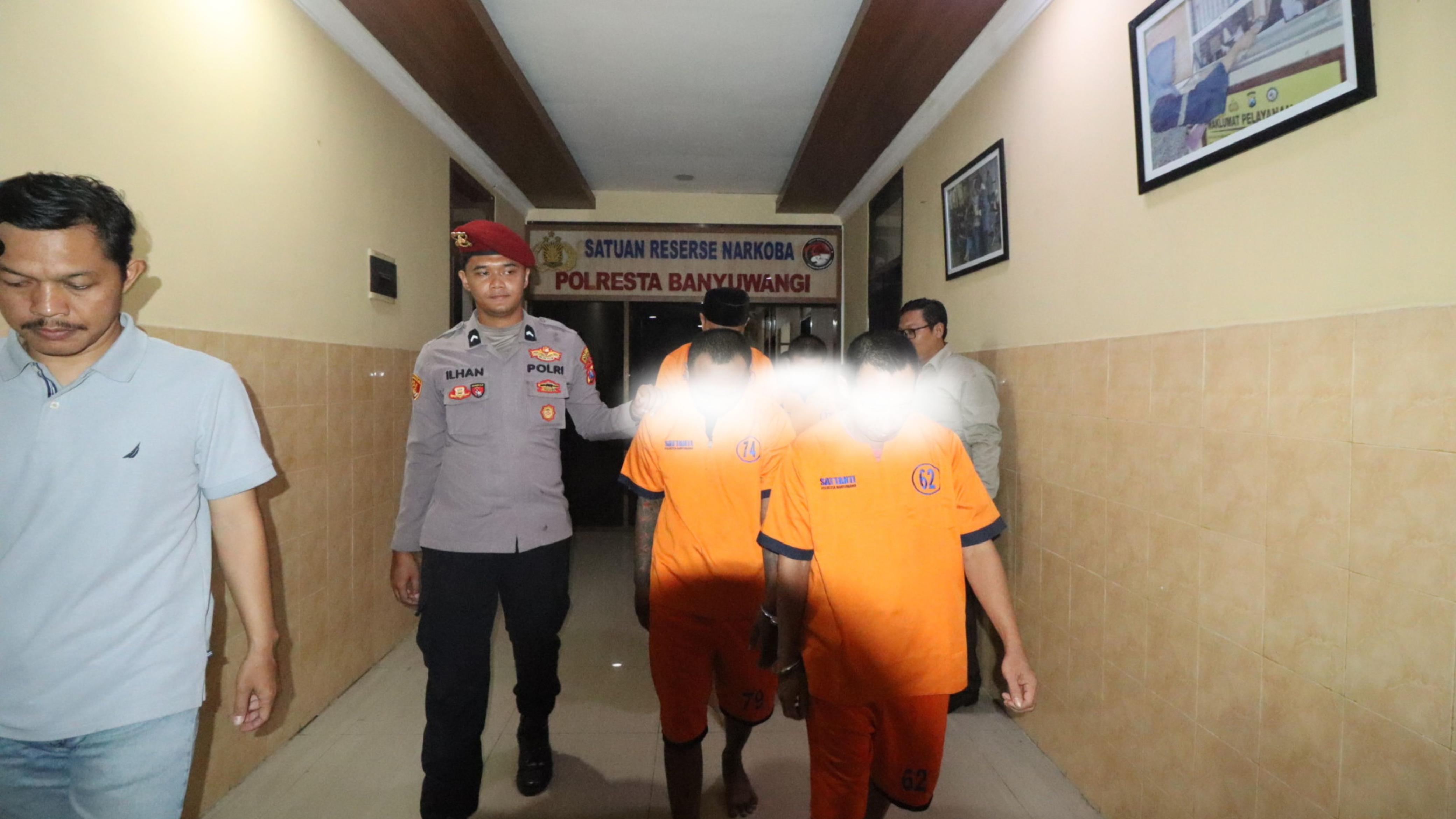 Tersangka WU, dengan barang bukti 96,59 gram sabu di Giri, Banyuwangi dan tersangka I alias G, dengan barang bukti 33,02 gram sabu di Sempu, Banyuwangi.