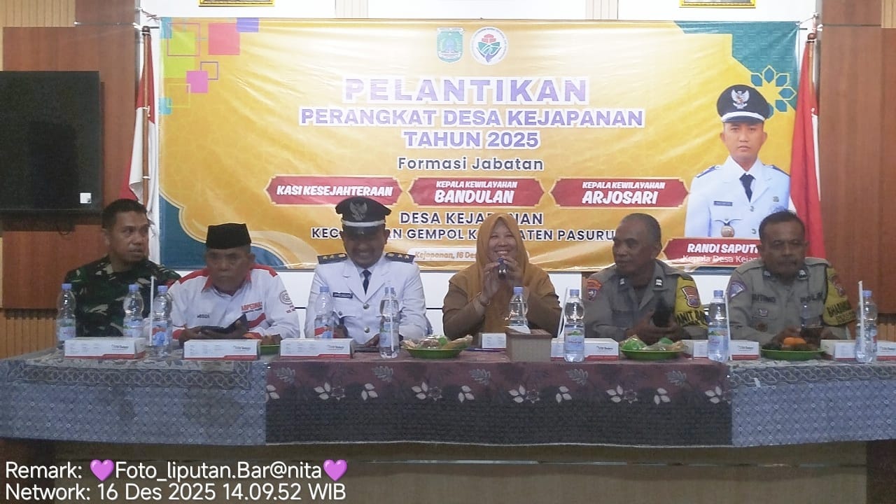 Prosesi pelantikan yang berlangsung khidmat di Pendopo Balai Desa Kejapanan ini bertujuan untuk mengisi kekosongan jabatan guna optimalisasi pelayanan publik. Dan di hadiri Forkopimcam Gempol, BPD, serta tokoh masyarakat setempat. Selasa (16/12/2025)
