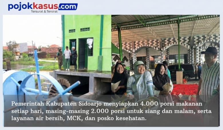 Di sela-sela sidak, Bupati Subandi juga meninjau dapur umum bagi warga terdampak banjir. Pemerintah Kabupaten Sidoarjo menyiapkan 4.000 porsi makanan setiap hari, masing-masing 2.000 porsi untuk siang dan malam, serta layanan air bersih, MCK, dan posko kesehatan.