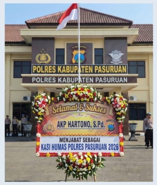 Pasuruan, pojokkasus.com – Pimpinan Redaksi Pojokkasus.com menyampaikan ucapan selamat dan sukses atas amanah jabatan baru yang diemban oleh AKP Hartono S.Pd sebagai Kepala Seksi Hubungan Masyarakat (Kasi Humas) Polres Kabupaten Pasuruan pada tahun 2026.