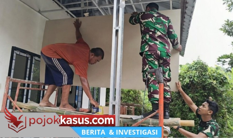 PASURUAN, Pojokkasus.com – Renovasi mushola rampung bersama dalam program TNI Manunggal Membangun Desa (TMMD) Ke-127 Kodim 0819/Pasuruan terus menunjukkan progres signifikan. Pada Senin (9/3/2026), Satgas TMMD bersama warga Dusun Kili, Desa Wonosari, Kecamatan Gondangwetan, Kabupaten Pasuruan, bergotong royong menyelesaikan tahap pemasangan rangka plafon, pemasangan plafon, serta pengecatan dinding mushola.