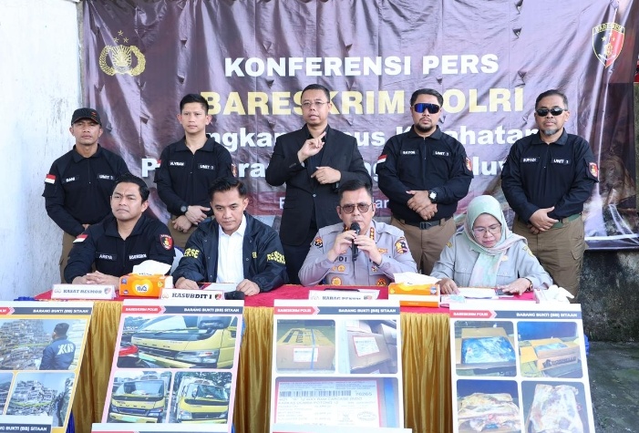 Konferensi pers tersebut dihadiri Kabag Penum Divhumas Polri Kombes Pol Erdi A. Chaniago, Kasubdit I Dittipidter Bareskrim Polri Kombes Pol Setyo K. Heriyatno, Kasat Resmob Bareskrim Polri Kombes Pol Teuku Arsya Khadafi, serta Ketua Kelompok Substansi Pengawasan Keamanan Produk Hewan Kementerian Pertanian Drh. Ira Figorita.