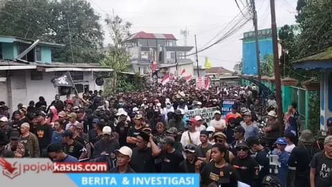 Pasuruan, pojokkasus.com — Ribuan warga long march yang tergabung dalam Gerakan Masyarakat Peduli Hutan (Gema Duta) menggelar aksi damai menolak alih fungsi hutan Tretes menjadi kawasan real estate, Minggu (29/03/2026) sekitar pukul 10.00. Massa melakukan long march dari Simpang Dung Biru Tretes menuju Jalan Letkol Telwe Limas Taman Wisata sambil membawa poster bertuliskan “Stop Alih Fungsi Hutan” dan “Selamatkan Hutan Tretes”.