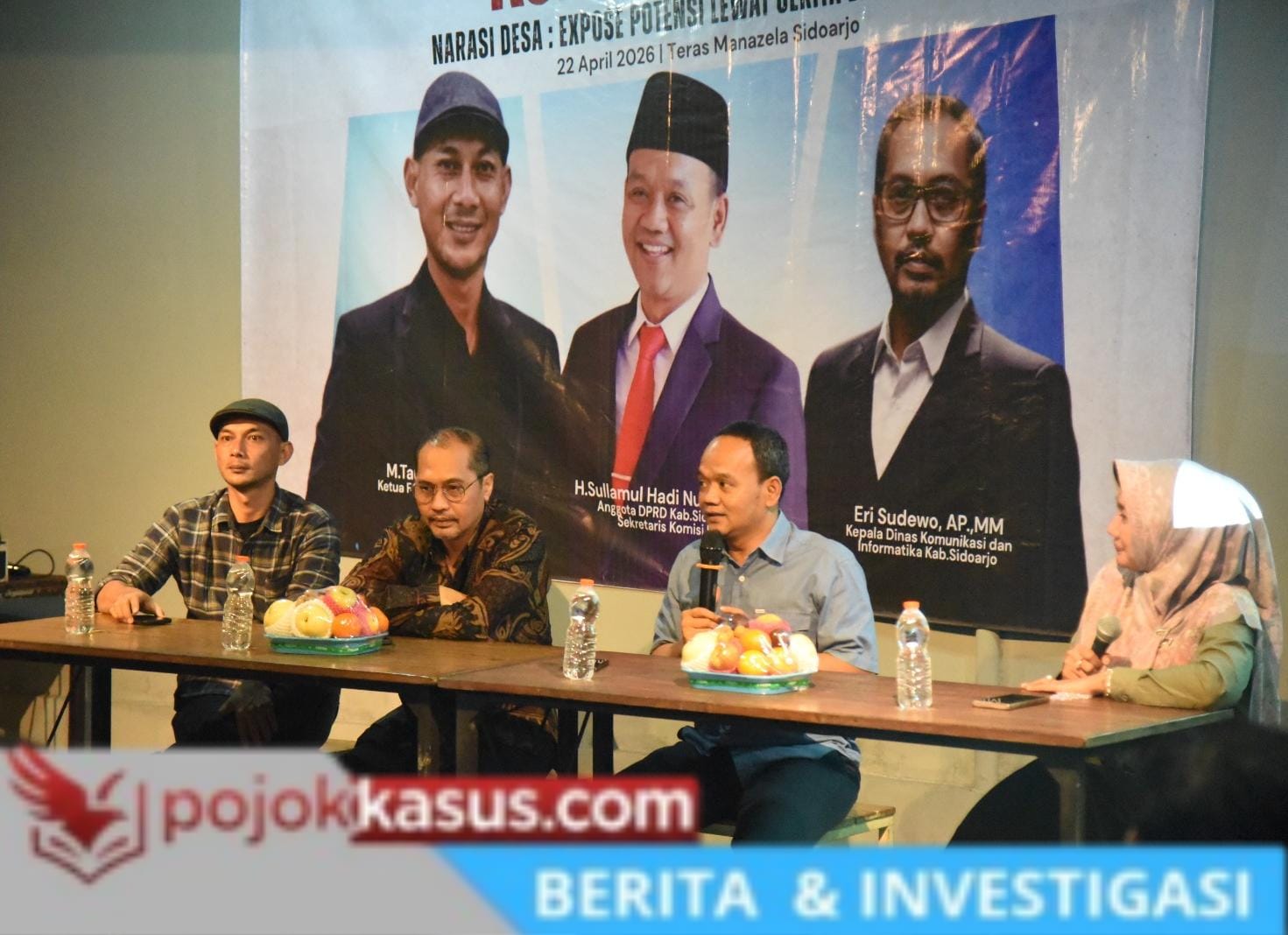 Kegiatan bertajuk Kopilaborasi – Narasi Desa: Expose Potensi Lewat Cerita dan Karya ini menghadirkan Kepala Dinas Kominfo Sidoarjo Eri Sudewo, Anggota DPRD Sidoarjo H. Sullamul Hadi Nurmawan, serta wartawan dari Forum Wartawan Sidoarjo (Forwas).